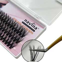 Navina Natural DIY segmento extensiones de pestañas al por mayor 40D racimos pestañas logotipo personalizado precortado segmento racimo pestañas