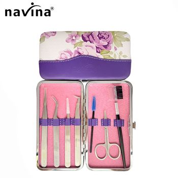 Kit de pinces à extensions de cils Navina, professionnel, pointues et courbées, acier inoxydable de qualité supérieure pour les cils classiques et volumineux