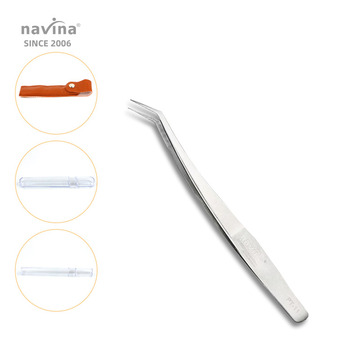 Navina 속눈썹 연장 핀셋 메이크업 도구 맞춤형 로고가있는 스테인레스 스틸 비 자성 거짓 속눈썹 핀셋